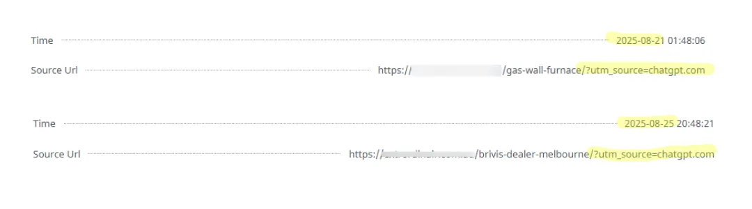 But here's what really got my attention: AI wasn't just helping them rank in Google Maps. It was getting them recommended when people asked ChatGPT and other AI tools for local business recommendations. Here's some of their lead form tracking: